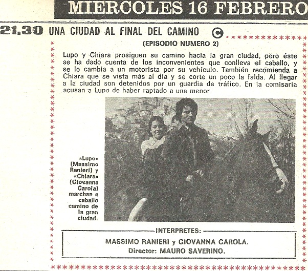 ResponderEliminarAlguien sabe si Giovanna Carola hizo alguna otra serie o película? La verdad es que me está resultando muy difícil encontrar algo suyo aparte de Una ciudad al final del camino.